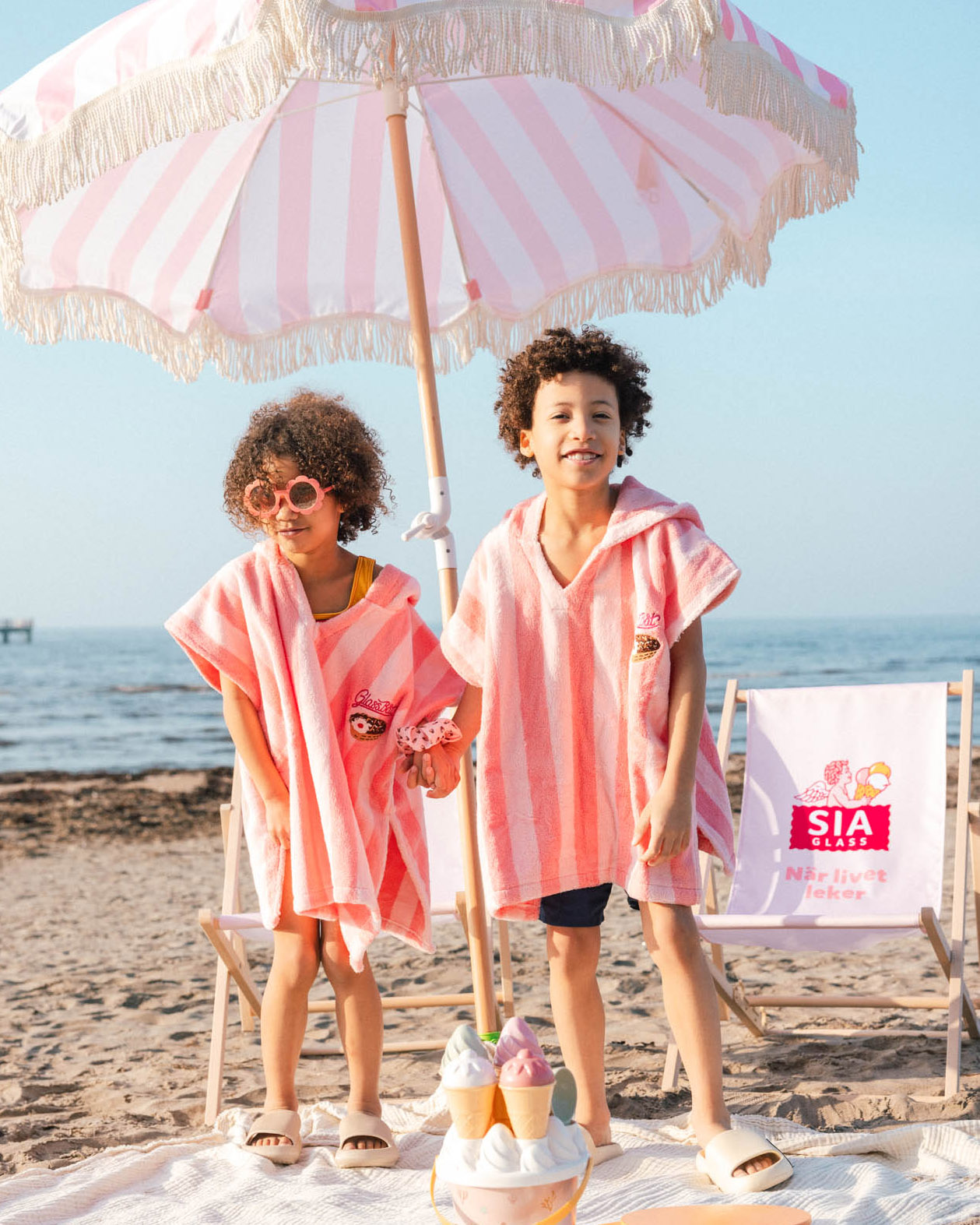 Campaign and lifestyle imagery for SIA Glass, created for marketing, packaging and digital channels. The production features a colourful beach setting and a modern family cast through Hidvi Models, highlighting the playful and inclusive identity of the brand.